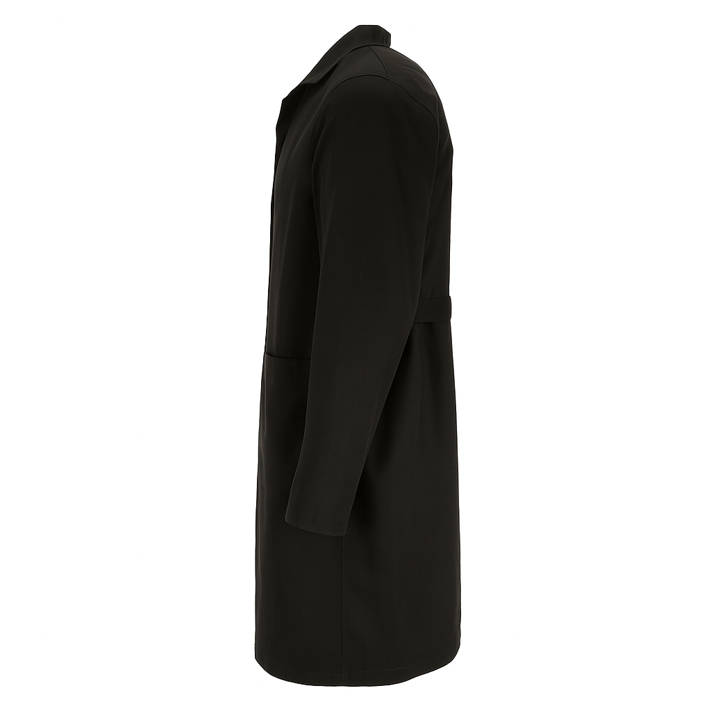 Schwarzer Laborkittel für Damen mit Knopfverschluss ist eine Kombination aus Funktionalität, Komfort und professionellem Aussehen. Die ideale Wahl für den täglichen Gebrauch in Laboren, Schulen und Forschungsinstituten.